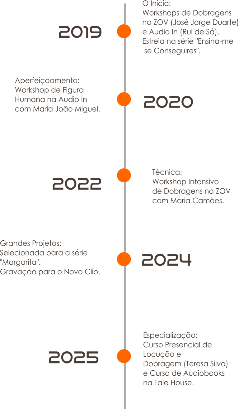 O meu percurso, com raízes no teatro, ensinou-me que a voz não é apenas som — é intenção, ritmo e sentimento.